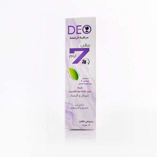 وهو كريم معزز بفيتامين E وزيت شجرة الشاي، يعمل على إزالة رائحة العرق من القدمين، ويبقى تأثيره لمدة 7 أيام حتى مع الاستحمام المتكرر، وفي حال ظهرت رائحة العرق مجددًا فكل ما عليك هو إعادة استعماله دون الحاجة لغسل المنطقة وسيقضي عليها مباشرة. وإذا أردت الحصول على أفضل النتائج ننصحك باستخدامه قبل النوم.
